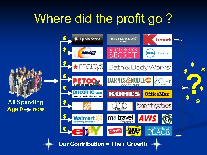 Where did the profit go ? $ $ $ All Spending Age 0 now $ ? $ $ $ Our Contribution = Their Growth $ $ $