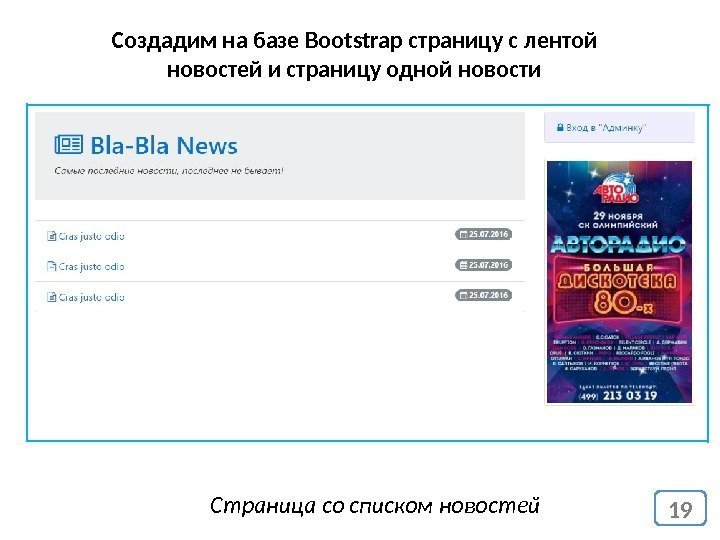 19 Создадим на базе Bootstrap страницу с лентой новостей и страницу одной новости Страница со списком новостей