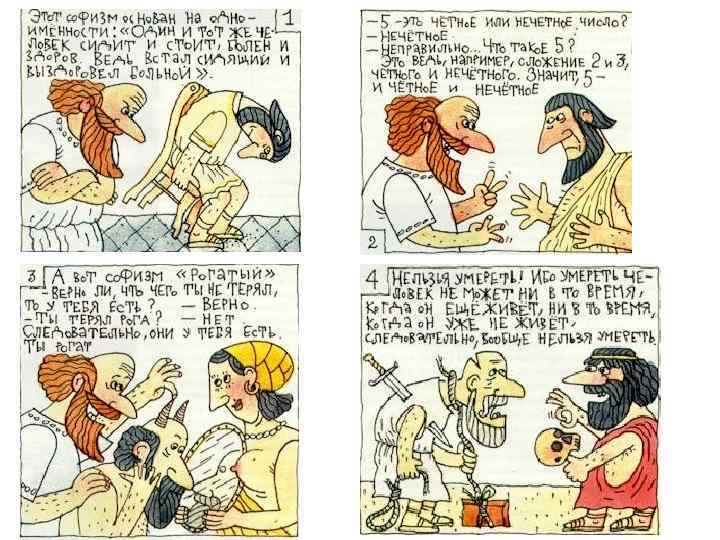 Логика — это теория формального мышления, теория рассуждений. Предостережение матери Одна афинская мать предостерегала своего сына от общественной жизни следующим образом: Если ты скажешь истину, люди будут тебя ненавидеть. Если ты скажешь ложь, тебя будут ненавидеть боги. Однако тебе придется говорить истину или ложь. Следовательно, или боги, или люди будут тебя ненавидеть. Сын ответил ей следующим образом: Если я скажу истину, то боги будут меня любить. Если я солгу, то меня будут любить люди. И поскольку мне придется говорить истину и ложь. Следовательно, или люди, или боги будут меня любить.