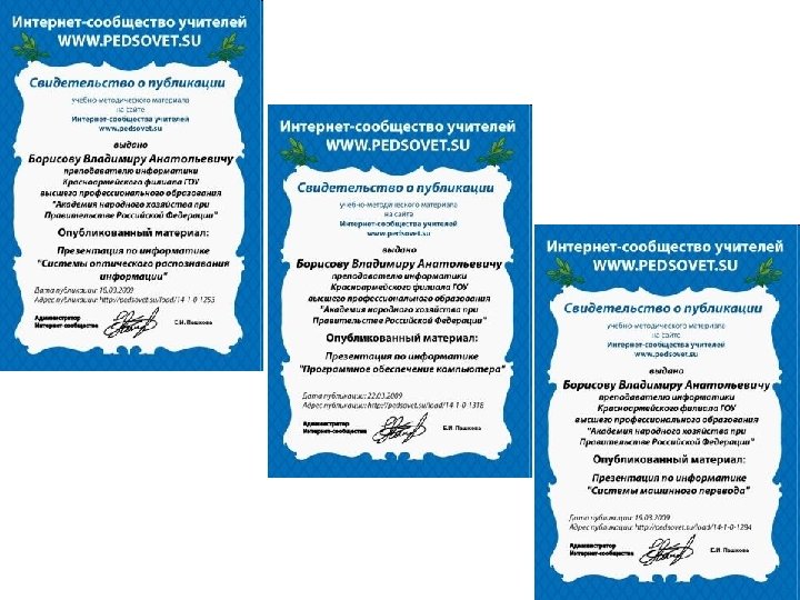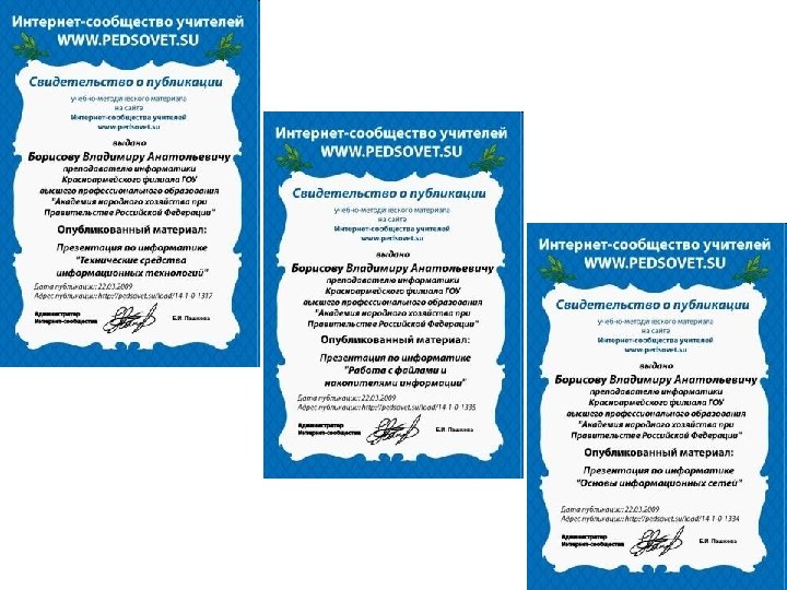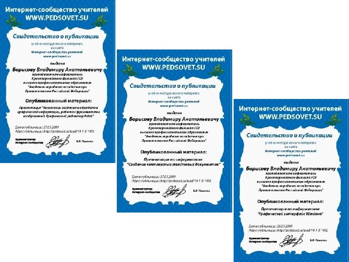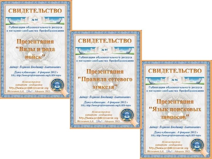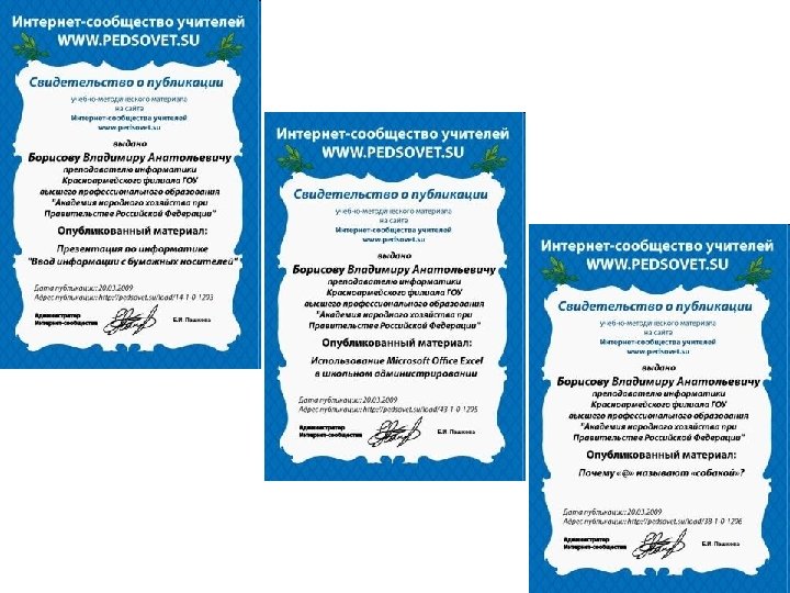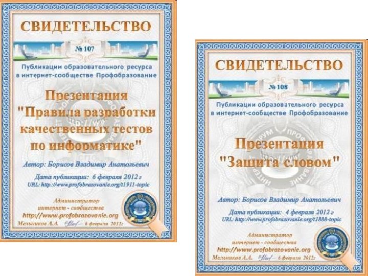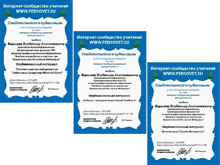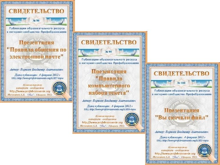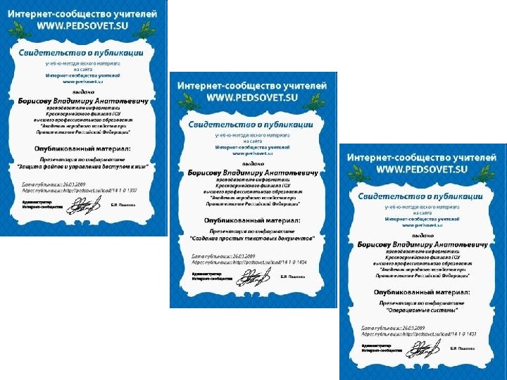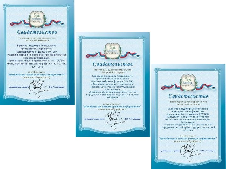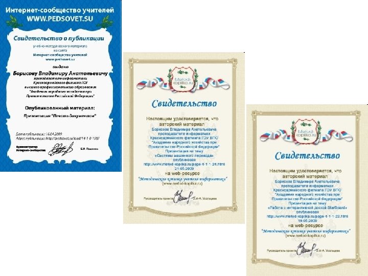 Участие в интернет сообществах • • • http: //www. it-n. ru/ http: //festival. 1 september. ru/ http: //pedsovet. su/ http: //www. metod-kopilka. ru/ http: //www. profobrazovanie. org/ http: //metodisty. ru/