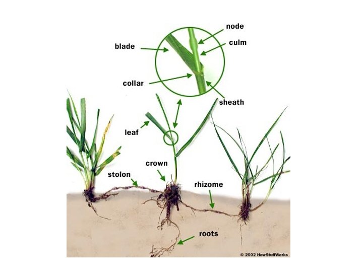Specialized stems • Rhizome: horizontal underground stem with (nodes and buds); iris, bermudagrass • Bulbs: shortened, compressed stem surrounded by leaves (scales) that envelop a flower bud • Corm: similar to bulb with scales reduced to dry covering • Tuber: enlarged portion of underground stem; potato with nodes as “eyes”
