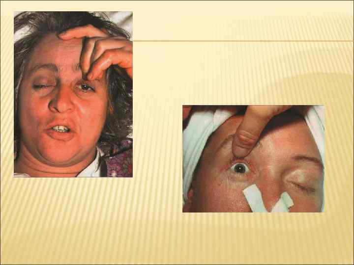 При осмотре в разгаре заболевания больные вялые, адинамичные. Лицо маскообразное. Одно -, чаще двусторонний птоз. Зрачки расширены, вяло или совсем не реагируют на свет; возможны нистагм, косоглазие, нарушаются конвергенция и аккомодация. Высовывание языка происходит с трудом, иногда толчками. Ухудшается артикуляция.