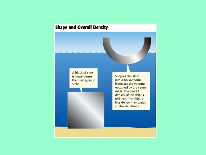 So…. • In a pool, you spread your arms, displacing more water. The water that is displaced weighs as much or more than you do and you float!