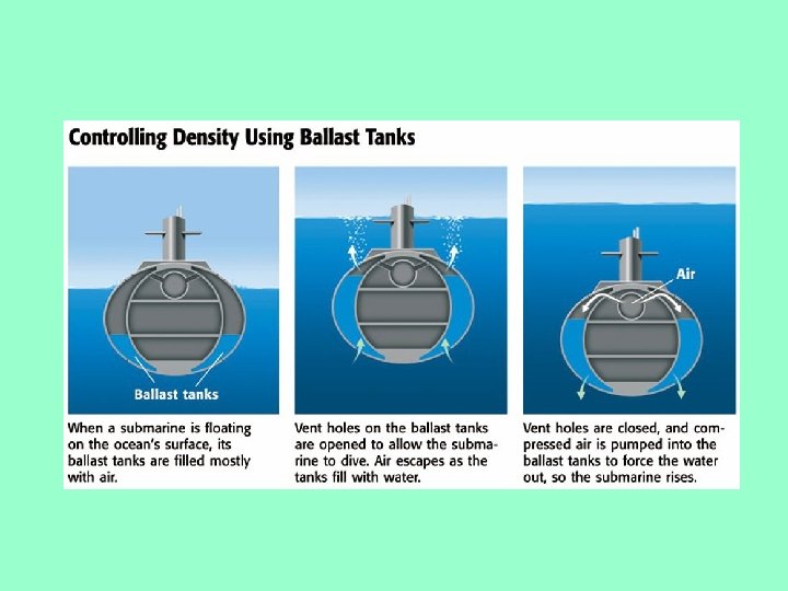 CHANGING MASS • Submarines have ballast tanks that can be opened to allow sea water to flow in. • As water is added, the submarine’s mass increases, but its volume stays the same.
