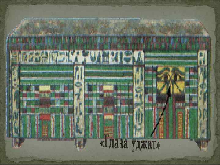 Саркофаги Древнейшие гробы выполнялись из дерева и имели прямоугольную форму. В эпоху Древнего царства саркофаги покрывались рядами иероглифических надписей. Гробы эпохи Среднего царства были украшены больше. На крышке гроба часто вырезалось рельефное изображение рук, скрещенных на груди и держащих различные амулеты. Некоторые гробы были богато украшены золотом и инкрустированы полудрагоценными камнями. Антропоидные (повторяющий форму человеческого тела) гробы использовались в течение свыше 2000 лет, но в эпоху Нового царства мумии стали помещать уже в два или даже три гроба, устанавливаемых один в другой.