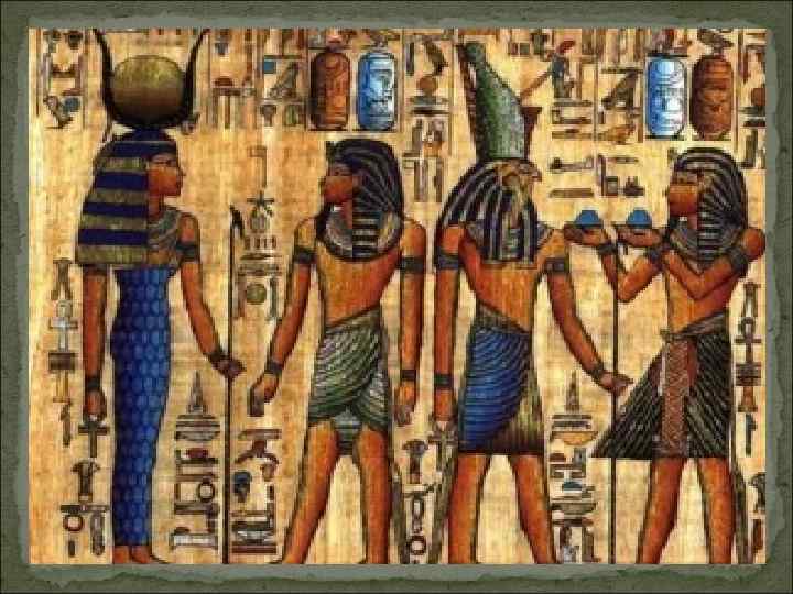 Примерно с 3000 г. до н. э. официальная религия Египта признавала фараона сыном солнечного бога Ра и таким образом самим богом. В египетском пантеоне существовало множество других богов и богинь, под властью которых находилось все: от явлений природы, подобно воздуху (бог Шу), до явлений культуры, подобных письменности (богиня Саф). Многие боги были представлены в виде животных или полулюдейполуживотных. Хорошо организованная и могущественная жреческая каста создавала семейные группы различных божеств, многие из которых, вероятно, были первоначально местными богами. Бог-творец Птах (согласно мемфисской теологии) был, например, объединен в богиней войны Сехмет, а бог-целитель Имхотеп вошел в триаду отец-мать-сын.