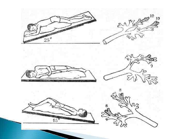 Создать дренажные положения со 2 -3 Выводит вязкую дня при первых признаках мокроту, которая не улучшения состояния и снижении удаляется при кашле температуры тела по 10 минут 3 раза в день постуральный дренаж, повороты, перемена положения в постели в сочетании с вибрационным массажем ( «лодочка» , «веером» , на мяче) ЛФК со 2 -3 дня заболевания Занятия проводятся ежедневно, лучше в утренние часы Субфебрильная температура не является противопоказанием Шпателем или ложкой, нажать на корень языка и вызвать кашель Дети до 3 -х лет не умеют откашливать мокроту