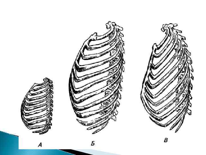 Горизонтальное расположение ребер, цилиндрическая форма грудной клетки на 1 –м году жизни Дыхание поверхностное, но более частое ЧДД 40 -60 –нов, 1 год-3035 Высокое стояние диафрагмы При метеоризме и переедании у ребенка может появиться одышка