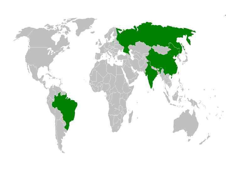 Бразилия Россия Индия Китай 25% суши 40% населения