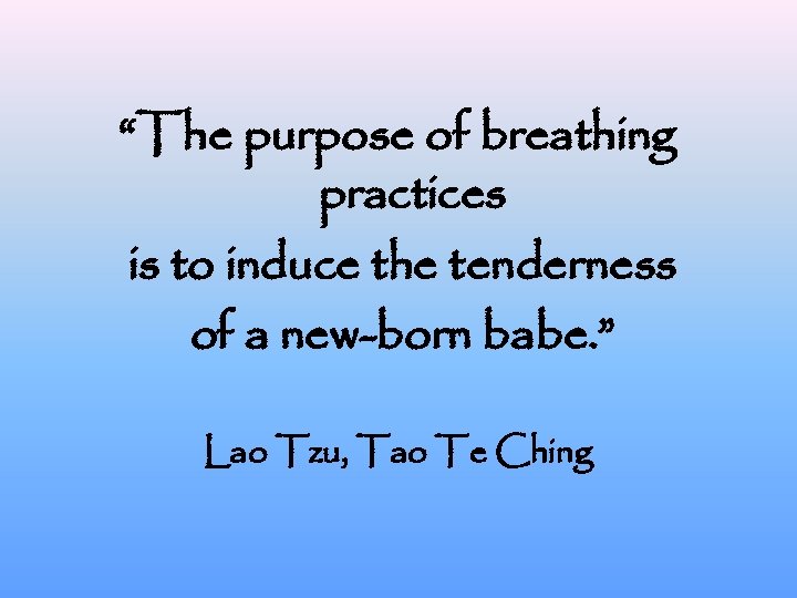 “The purpose of breathing practices is to induce the tenderness of a new-born babe. ” Lao Tzu, Tao Te Ching