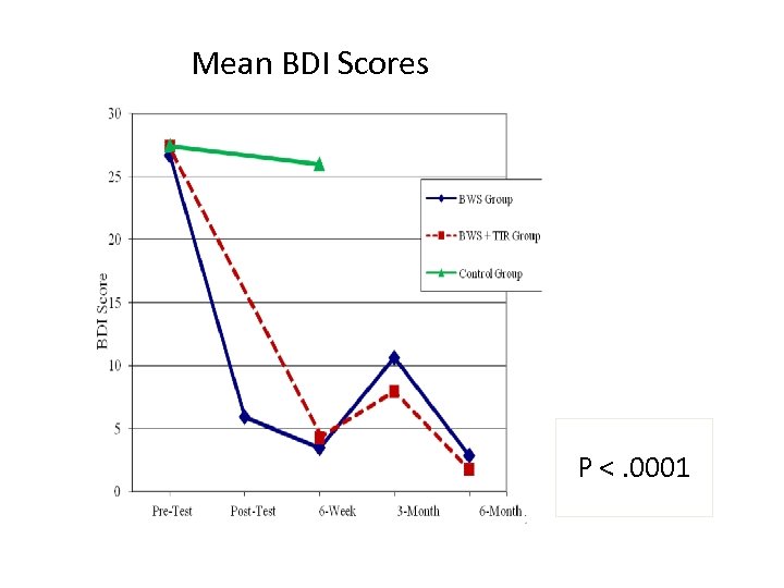 Study Design 183 subjects: 3 equal groups, assigned by camps 1. Breath Water Sound (BWS) + 10 -minute Sudarshan Kriya: 2 hours/day, 4 consecutive days = total 8 hours 2. B+T: BWS followed 3 days later by TIR (Traumatic Incident Reduction, client-driven exposure therapy) 3 -5 sessions 3. CON: 6 -week wait-list Control Group Collaboration: National Institute of Mental Health and Neurosciences of India, The Trauma Center of Dade County Florida, The International Association of Human Values