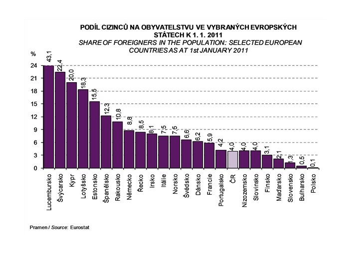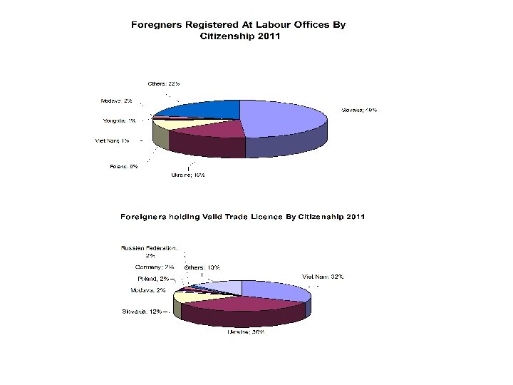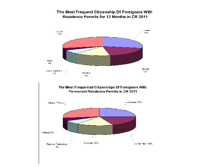 Most frequent nationalities • • • • Slovensko: 84. 607 (Cizinecká statistika), 106. 425 zaměstnaných k 31. 12. 2011 Ukrajina: 115. 153 Vietnam: 57. 762 Rusko: 33. 354 Polsko: 19. 156 Německo: 16. 895 Bulharsko: 8. 008 USA: 6. 893 Moldávie: 6. 764 Čína: 5. 614 Rumunsko: 5. 432 Mongolsko: 5. 338 UK: 5. 135 Kazachstan: 4. 900