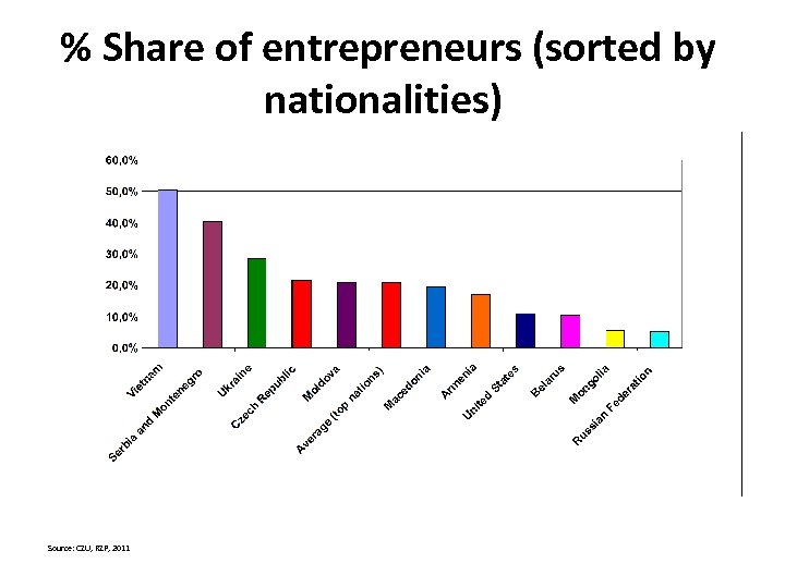 % Share of entrepreneurs (sorted by nationalities) Source: CZU, RZP, 2011
