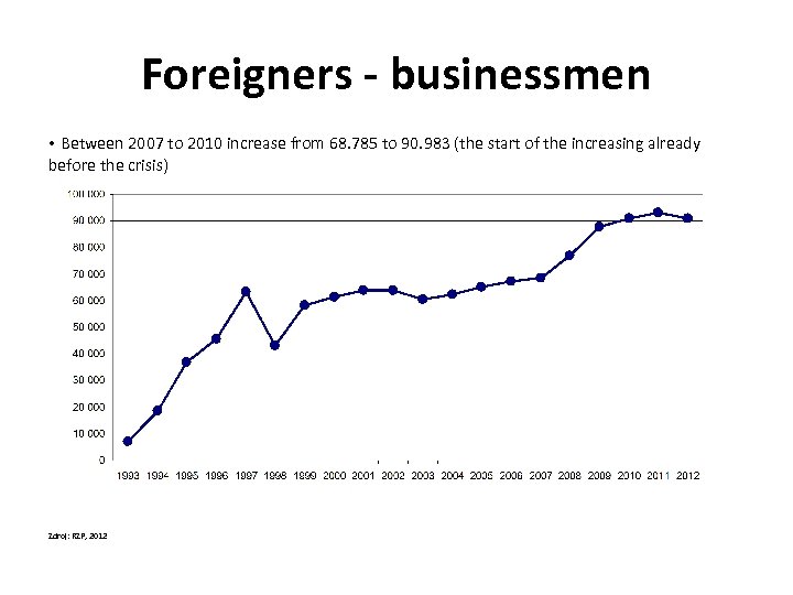 Foreigners - businessmen • Between 2007 to 2010 increase from 68. 785 to 90. 983 (the start of the increasing already before the crisis) Zdroj: RZP, 2012