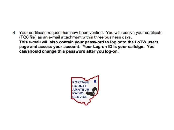 LOTW Accommodates a variety of scenarios • Portable / Mobile operation require different certificates! K 3 GP, K 3 GP/8, VE 3/K 3 GP, K 3 GP/MM, etc. • Different locations may exist for each certificate (includes grid squares, state, county) – K 3 GP in Finleyville PA, Bethel Park PA, North Canton, OH and Alliance, OH – Different locations must be signed differently (More later)