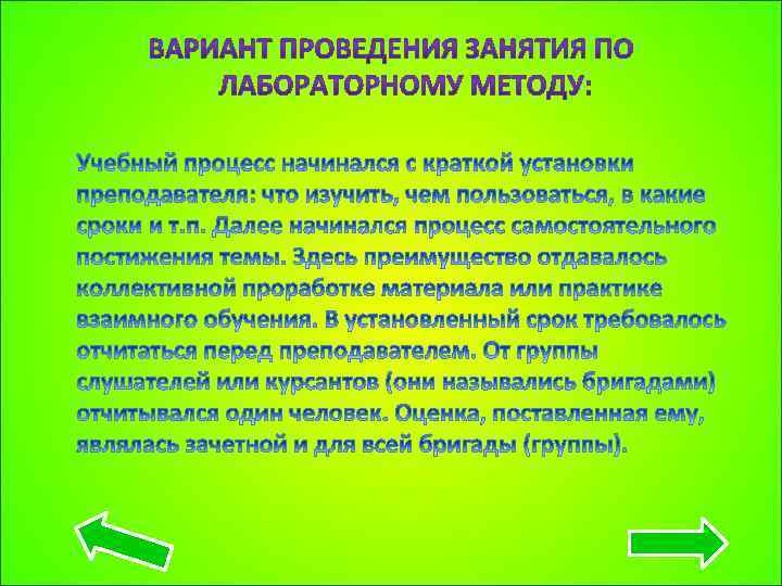 Основная задача, которую преследовали авторы введения лабораторного метода, заключалась в том, чтобы приучить слушателей и курсантов самостоятельно добывать знания.