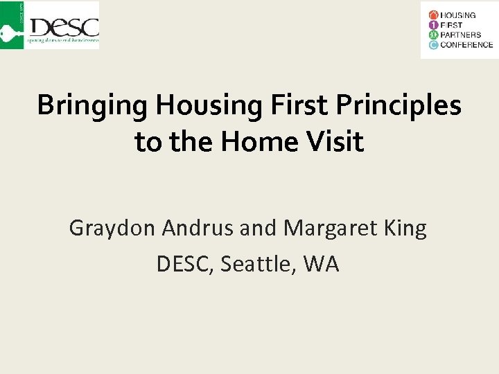 Bringing Housing First Principles to the Home Visit Graydon Andrus and Margaret King DESC, Seattle, WA