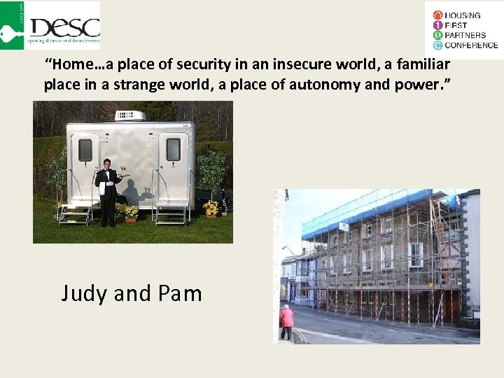 “Home…a place of security in an insecure world, a familiar place in a strange world, a place of autonomy and power. ” Judy and Pam