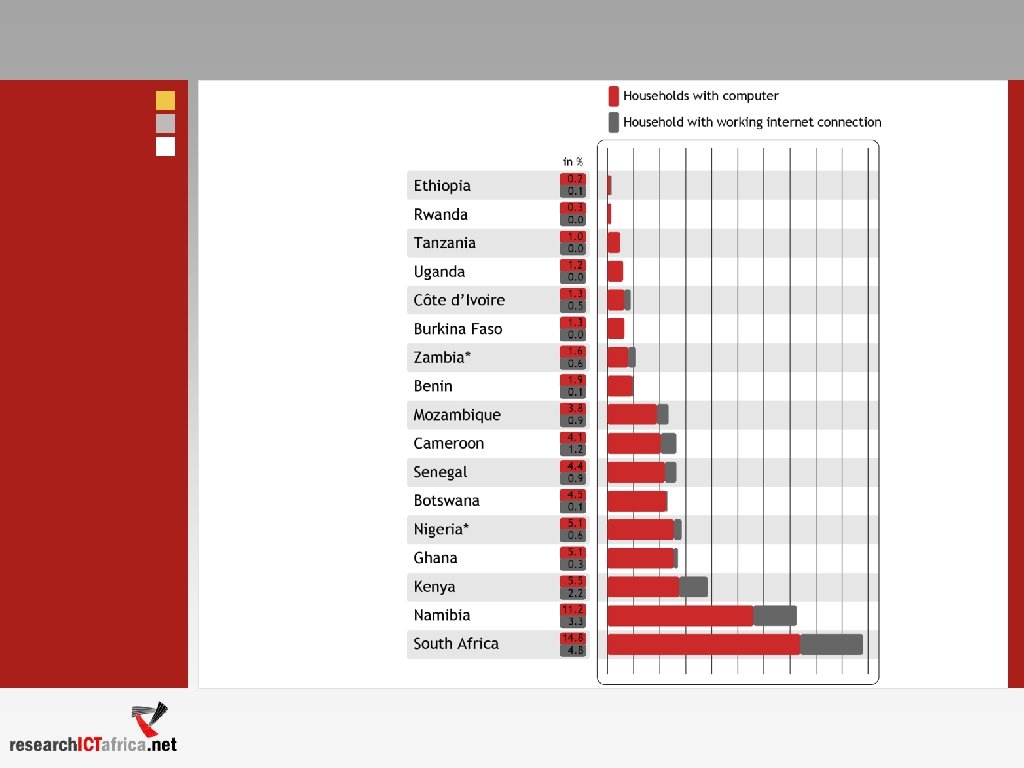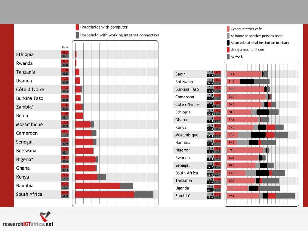 Further drivers – convergence • • Liberalisation of telecommunications market: technological innovation IP (“Triple play”) Broadband Mobile Anything, across any platform, always on Audience producers and receivers of content Underpinned about assumptions around affordable bandwidth largely not applicable to Africa.