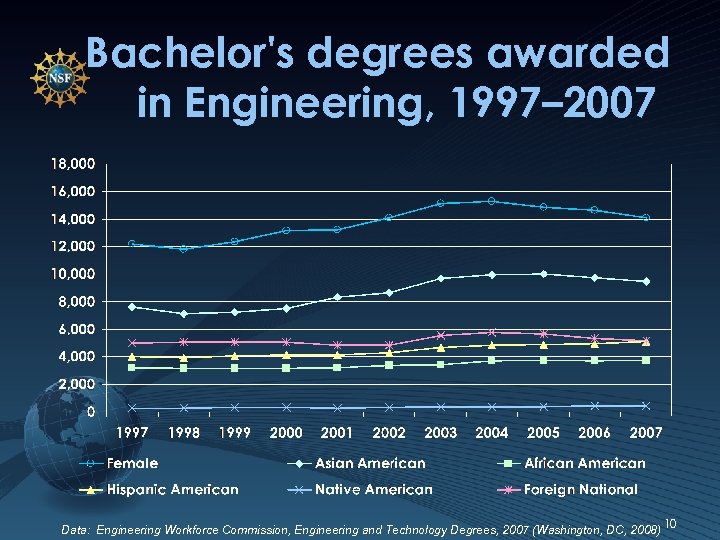 U. S. Demographic Data ENG BS Degrees Granted 1997 -2007 Data: NSF Science & Engineering Indicators; Do. Ed National Center for Education Statistics 9