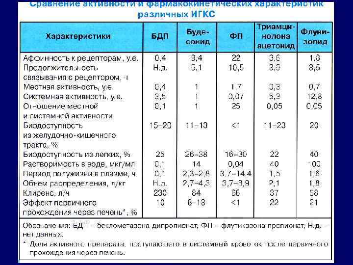 Ингаляционные ГКС - ингаляционные ГКС (ИГКС) являются наиболее эффективными противовоспалительными препаратами для терапии БА. - ИГКС рекомендованы как препараты первой линии практически для всех больных БА, в том числе и с легкой персистирующей БА. - по сравнению с СГКС ИГКС имеют: * высокое сродство к рецепторам; * выраженную местную противовоспалительную активность; * более безопасный клинический профиль — при сравнимой эффективности ИГКС вызывают значительно меньше нежелательных эффектов (НЭ).