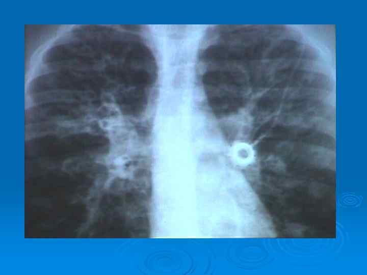 Ø Ø В период обострения появляются жалобы на боль. Есть мнение, что болевой синдром иногда имитирует картину ТЭЛА. Болевой синдром чаще проявляется двумя формами. При первой боль носит плевральный характер (локальное проявление с усилениями во время глубокого вдоха), при второй — боль не имеет четкой локализации, а ощущается в виде чувства сдавления, распирания, затрудненного дыхания. Нередко повышается температура тела. В период ремиссии повышение температуры до субфебрильного уровня бывает эпизодическим. В период обострения наблюдается длительная лихорадка в сочетании со слабостью, потливостью, иногда ознобами. Нередко больных беспокоит одышка, которая не соответствует выраженности дыхательной недостаточности. Отмечаются общая слабость, утомляемость, снижение физических возможностей. К симптомам БЭ может присоединиться картина развившихся осложнений: кровохарканья и легочного кровотечения (у 19, 3% больных), спонтанного пневмоторакса (0, 7%), абсцедирования (1, 8%), эмпиемы плевры и пиопневмоторакса (0, 4%); кроме того, возможны сепсис, аспирация, эрозивный гастродуоденит, язвы желудка и двенадцатиперстной кишки, желудочно-кишечные кровотечения и др.