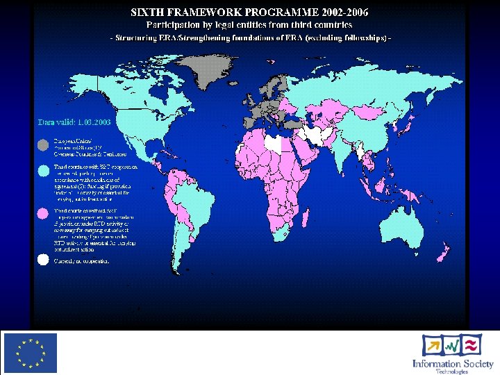 Call 3: S. O. 2. 3. 6. 2 To prepare for future international co-operation in IST Emphasis on the following countries: • Developing countries • Mediterranean partner countries • Russia and the other New Independent States • Western Balkan countries The list of target countries for specific measures in support of international co-operation is provided in Annex C of the Specific Work Programme (http: //www. cordis. lu/fp 6/sp 1_wp. htm).