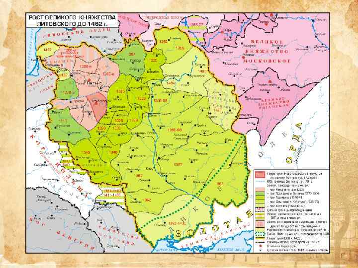 В 1356— 1359 годах во время борьбы за власть в Брянске княжество было захвачено Ольгердом и присоединено к Великому княжеству Литовскому, княжение возвращено представителю Ольговичей Роману Михайловичу. После похода московских войск на брянскую землю в 1370 году Ольгерд посадил в Брянске своего сына Дмитрия (в 1372 году он упомянут в качестве брянского князя). Воображаемый портрет Ольгерда. Гравюра из «Описания Европейской Сарматии» , 1578. Преддверие Куликовской битвы. Русское войско встречает литовских союзников - князей Андрея Полоцкого Ольгердовича и Дмитриия Ольгердовича Брянского