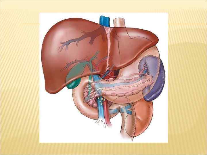 Печень Функции: 1. барьерная – обезвреживание продуктов метаболизма 2. 2. выработка желчи 3. 3. участие во всех видах обмена веществ 4. 4. регуляция гомеостаза 5. 5. образование ФСК 6. 6. участие в теплопродукции 7. 7. депо крови 8. 8. в эмбриональном периоде – орган гемопоэза