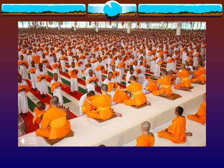 Обеты v При посвящении монахи приносят 9 обетов. v 1. Не убивать v 2. Не красть v 3. Не связазываться с женщинами. v 4. Не злословить v 5. Не браниться v 6. Не лгать
