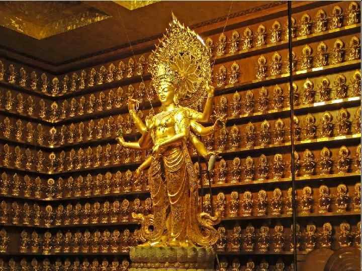 • К VI веку буддизм стал в Китае господствующим течением и фактически приобрёл статус государственной религии. Этому способствовал император У-ди династии Лян. • Буддийские монастыри превратились в крупных земельных собственников; богатые монастыри давали деньги в рост. Буддизм в Китае не вытеснил традиционные китайские учения — конфуцианство и даосизм, а составил единый комплекс «трёх религий» (сань цзяо), где каждое учение как бы дополняло два других. Считалось, что учение Будды выражает «внутреннюю» , «сокровенную» сторону наследия древних китайских мудрецов. Одновременно определилось место буддизма в традиционной обрядности китайцев: в ведении буддистов оказались почти исключительно заупокойные обряды.
