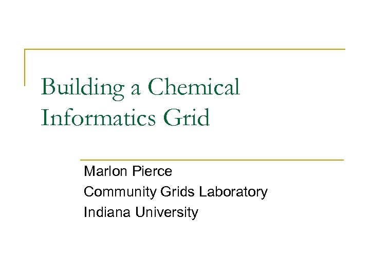 Building a Chemical Informatics Grid Marlon Pierce Community Grids Laboratory Indiana University
