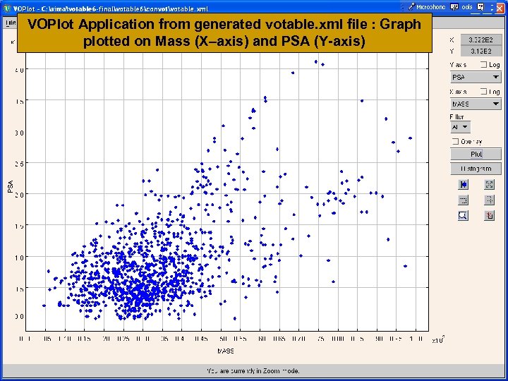 VOPlot Application from generated votable. xml file : Graph plotted on Mass (X–axis) and PSA (Y-axis)
