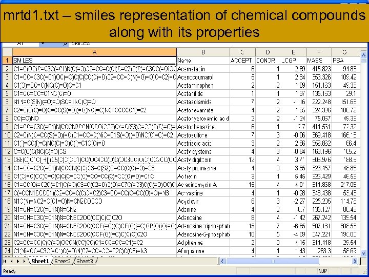 mrtd 1. txt – smiles representation of chemical compounds along with its properties