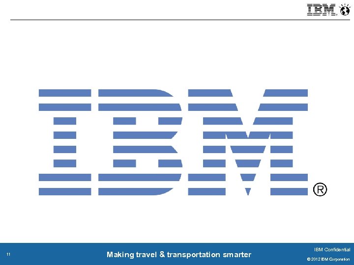 using technology to change processes and outcomes + + Instrument Interconnect Insight Collect Integrate Analyze = 10 Making travel & transportation smarter IBM Confidential © 2011 IBM Corporation © 2012 IBM Corporation