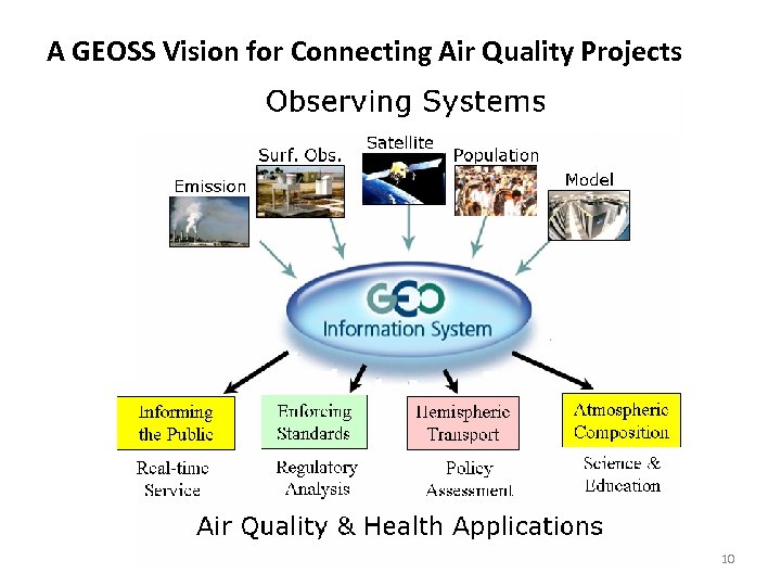 Many other AQ related projects… List of US projects from the EPA Data Summit: http: //wiki. esipfed. org/index. php/AQ_Data_Systems_and_Processing_Centers Start of an international compilation of project descriptions: http: //wiki. esipfed. org/index. php/GEOSS_Relevant_AQ_Projects 9