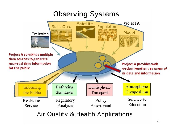 Project A combines multiple data sources to generate near-real time information for the public Project A provides web service interfaces to some of its data and information 11