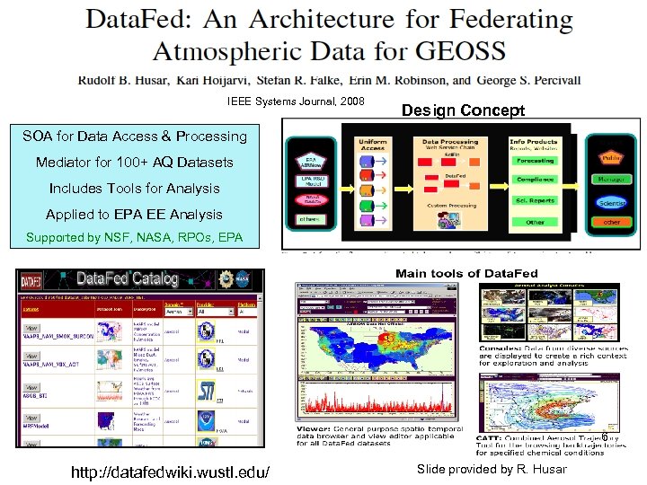 IEEE Systems Journal, 2008 Design Concept SOA for Data Access & Processing Mediator for 100+ AQ Datasets Includes Tools for Analysis Applied to EPA EE Analysis Supported by NSF, NASA, RPOs, EPA 6 http: //datafedwiki. wustl. edu/ Slide provided by R. Husar