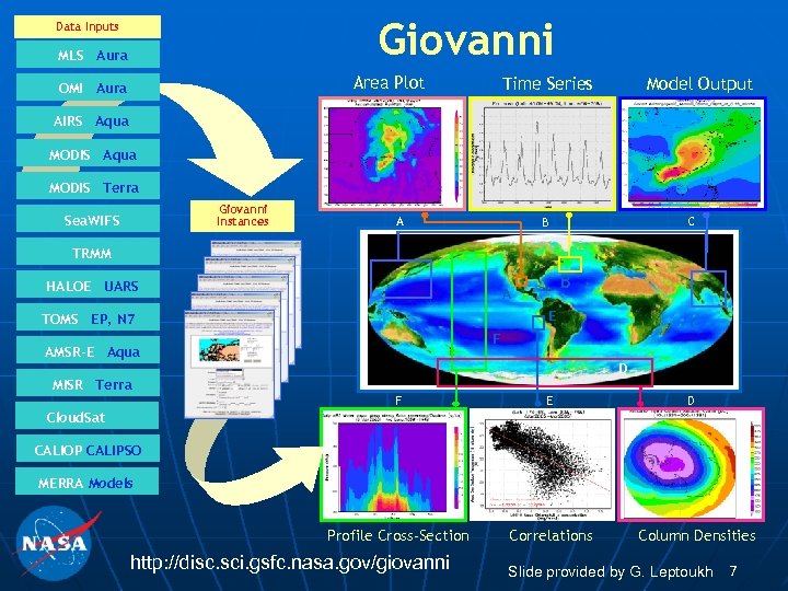 Giovanni Data Inputs MLS Aura Area Plot OMI Aura Time Series Model Output AIRS Aqua MODIS Terra Giovanni Instances Sea. Wi. FS A C B TRMM HALOE UARS TOMS EP, N 7 B A C E C F AMSR-E Aqua D MISR Terra F E Profile Cross-Section Correlations D Cloud. Sat CALIOP CALIPSO MERRA Models http: //disc. sci. gsfc. nasa. gov/giovanni Column Densities Slide provided by G. Leptoukh 7