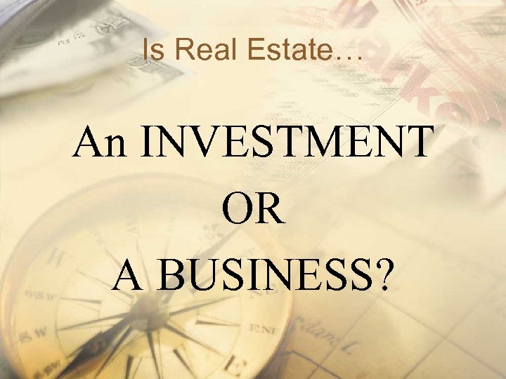 Is Real Estate… An INVESTMENT OR A BUSINESS?