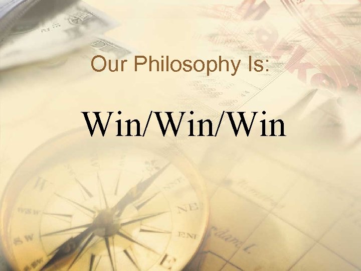 Our Philosophy Is: Win/Win