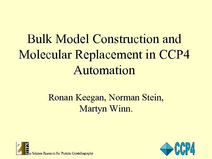Bulk Model Construction and Molecular Replacement in CCP 4 Automation Ronan Keegan, Norman Stein, Martyn Winn.