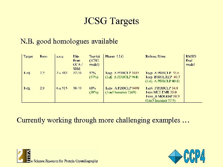 JCSG Targets N. B. good homologues available Currently working through more challenging examples …
