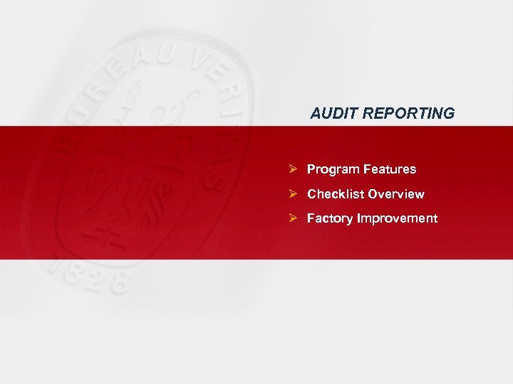 AUDIT REPORTING Ø Program Features Ø Checklist Overview Ø Factory Improvement