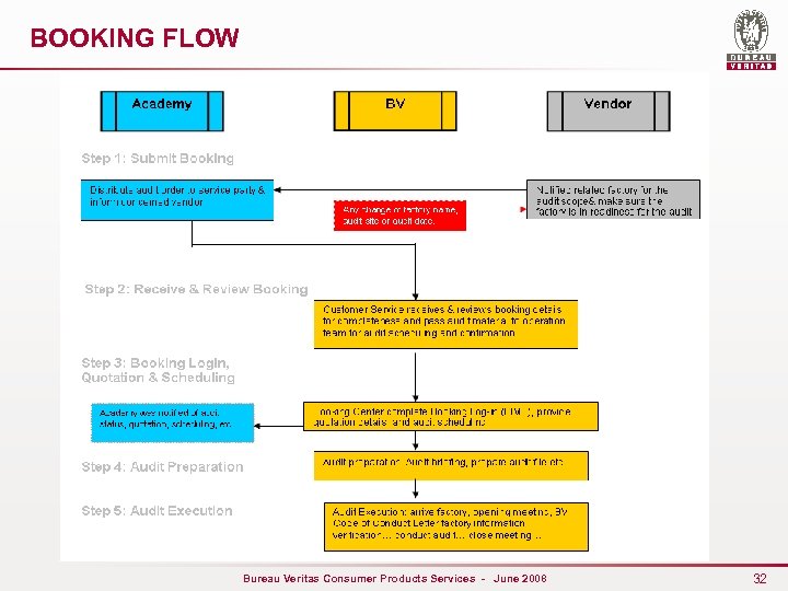 BOOKING FLOW Bureau Veritas Consumer Products Services - June 2008 32