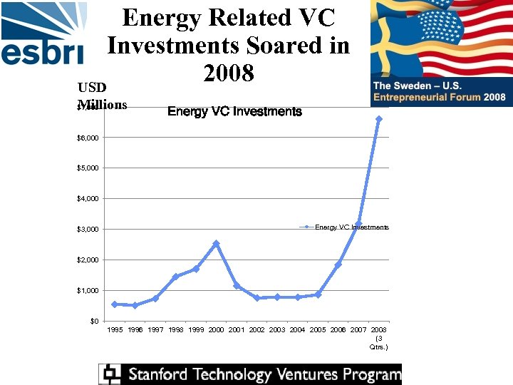Energy Related VC Investments Soared in 2008 USD Millions $7, 000 Energy VC Investments $6, 000 $5, 000 $4, 000 $3, 000 Energy VC Investments $2, 000 $1, 000 $0 1995 1996 1997 1998 1999 2000 2001 2002 2003 2004 2005 2006 2007 2008 (3 Qtrs. )