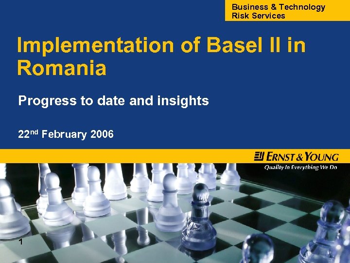 Business & Technology Risk Services Implementation of Basel II in Romania Progress to date and insights 22 nd February 2006 1 !@ #