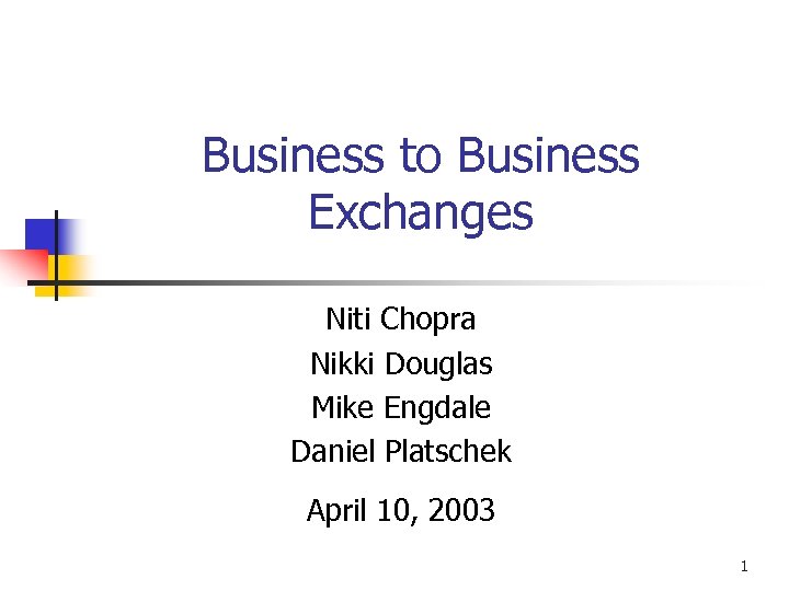 Business to Business Exchanges Niti Chopra Nikki Douglas Mike Engdale Daniel Platschek April 10, 2003 1