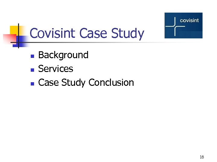 Covisint Case Study n n n Background Services Case Study Conclusion 16