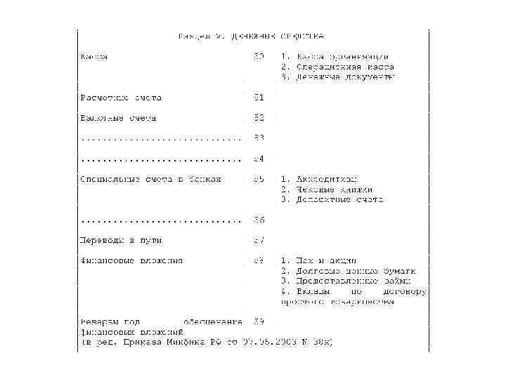 Все счета БУ систематизированы и перечень этих счетов называется Планом счетов. План счетов БУ и инструкция по его применению утвержден Приказом Минфина РФ от 31. 10. 2000 г № 94 н